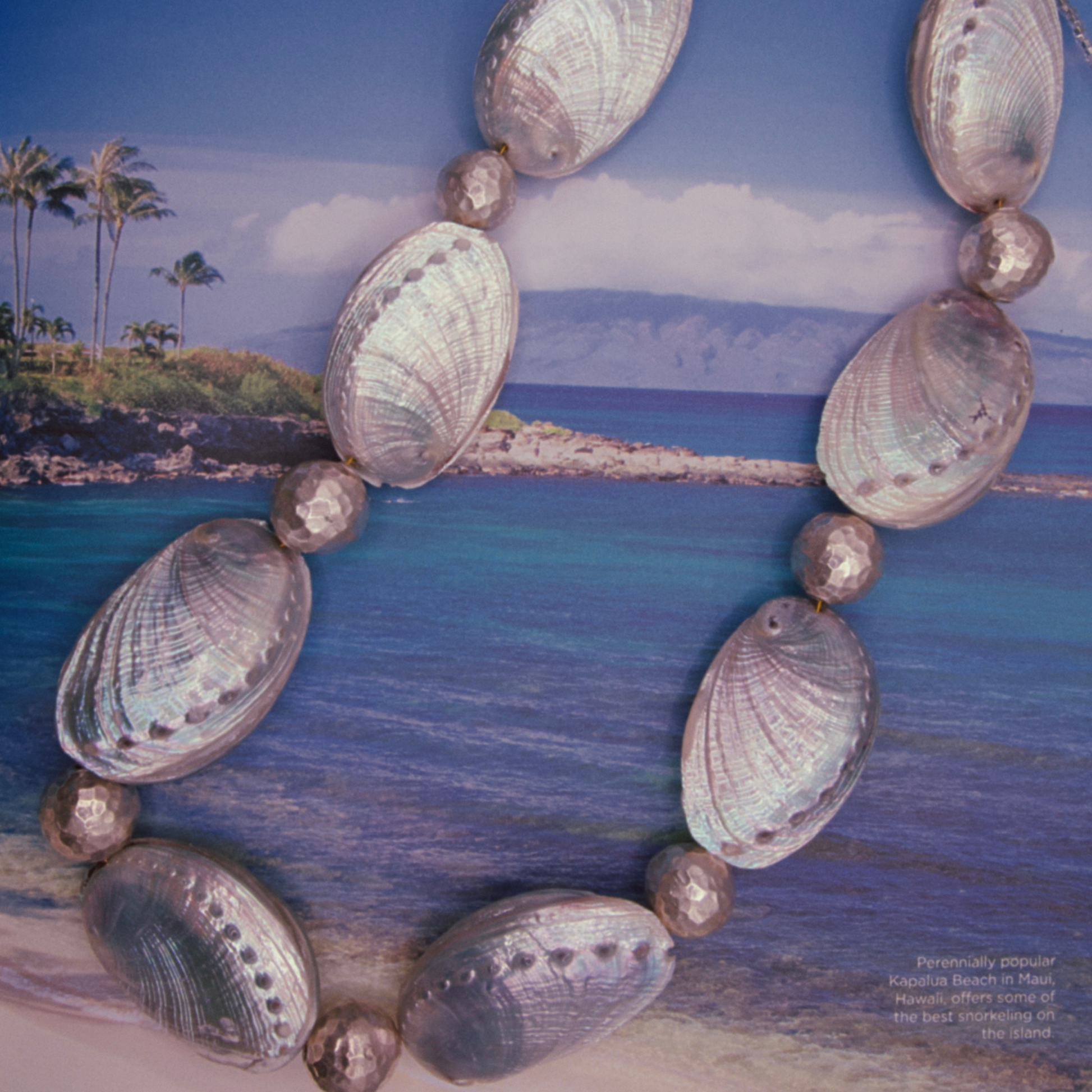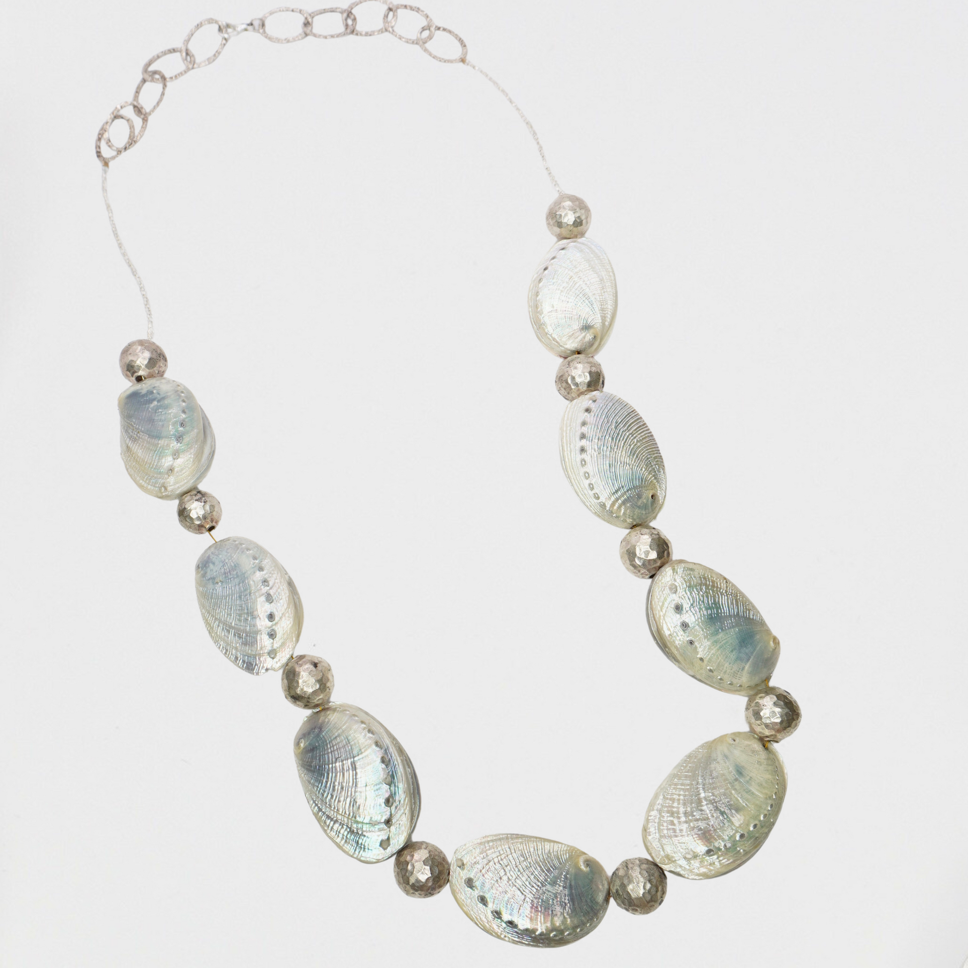 Ocean vibes on full display. This body chain features iridescent abalone shell that shifts with every movement, giving it that coastal shimmer. Silver accents add a little glam while the shape flatters your natural curves.