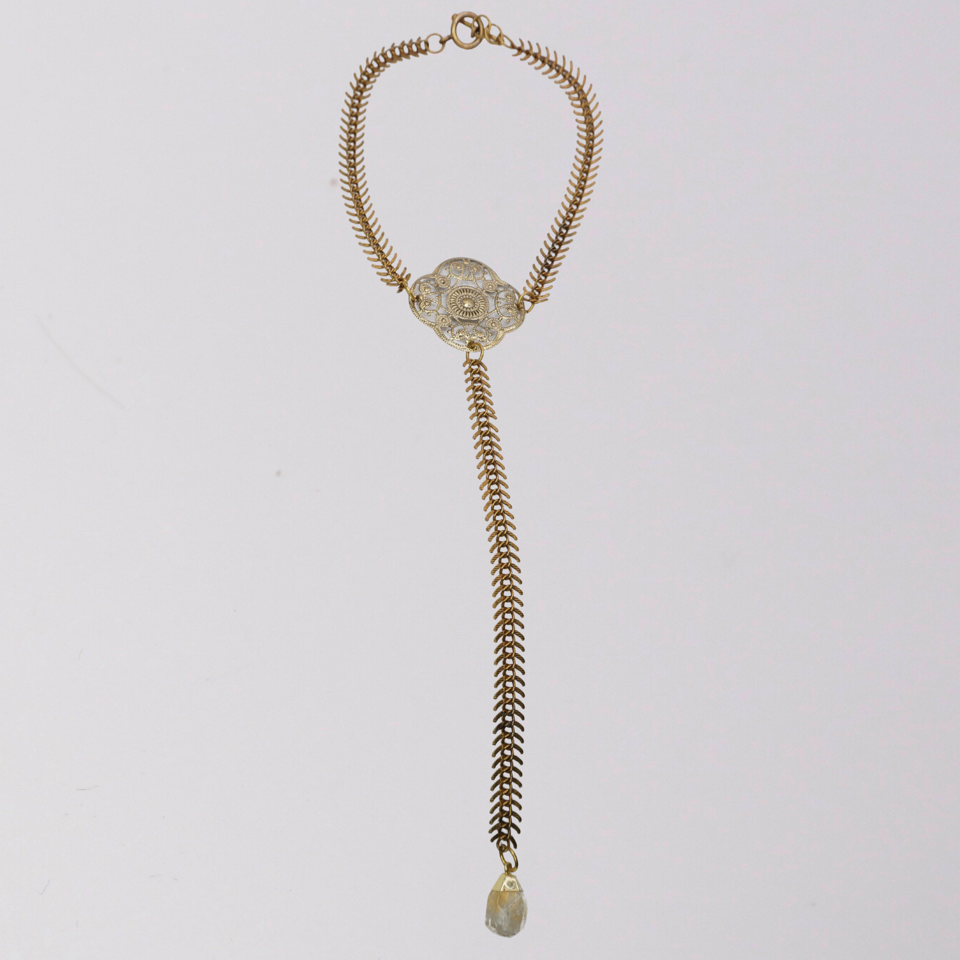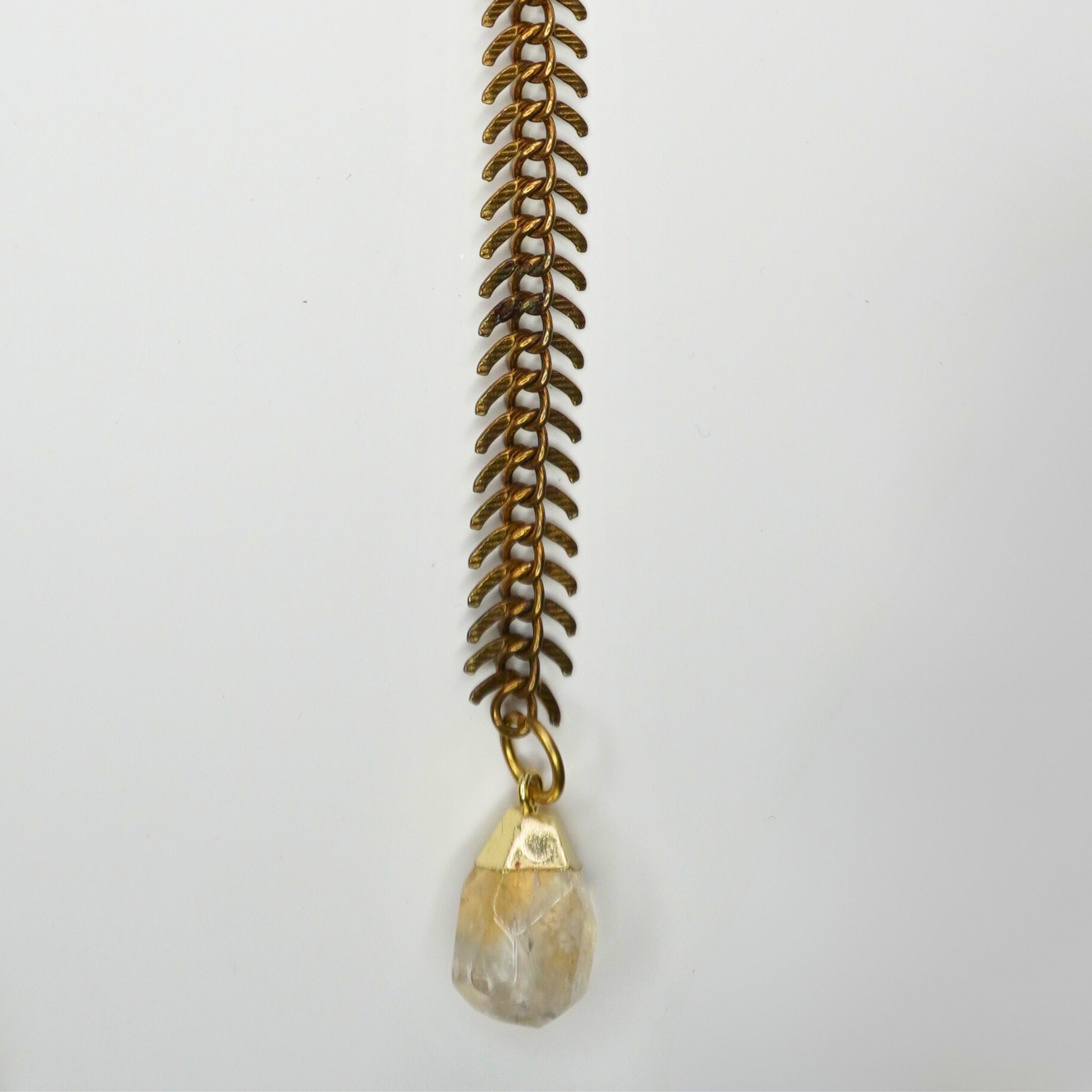 Golden light, but make it wearable. This choker features polished brass and citrine stones for a piece that glows without being too precious.
