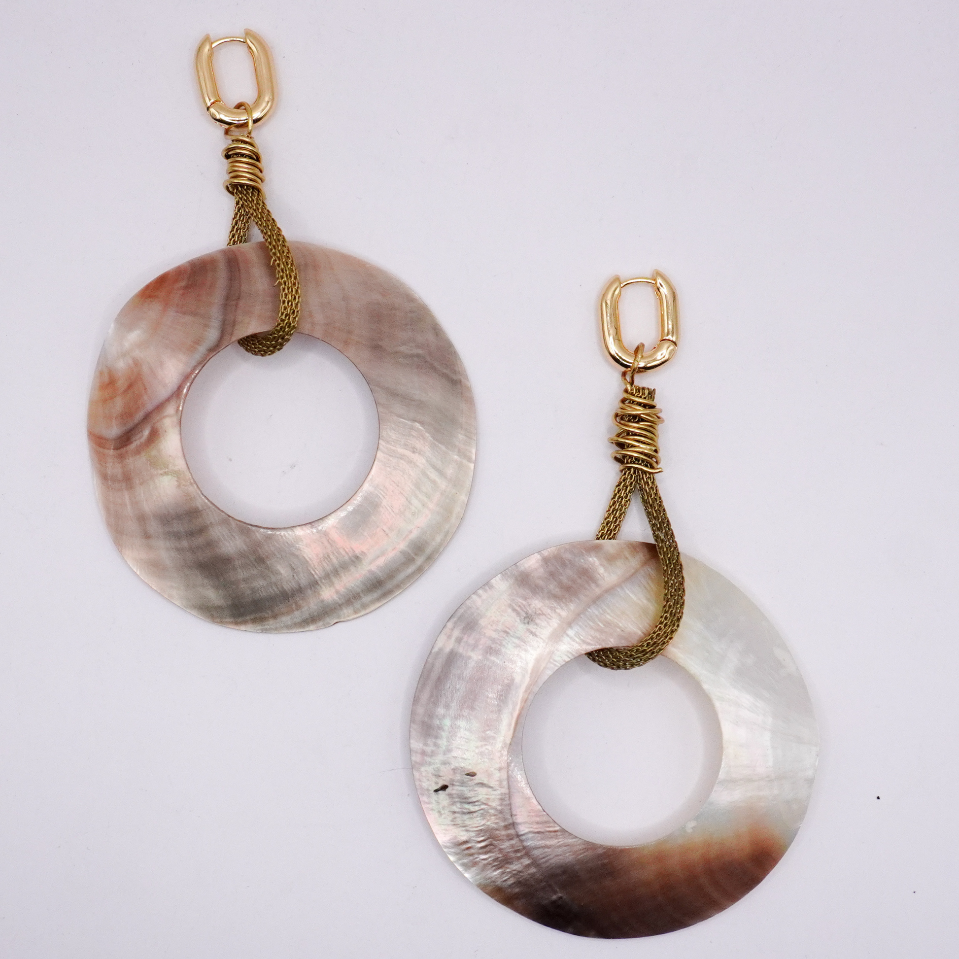 Seashells, but make it chic. These circle shell earrings feature natural shell discs and brass rope detailing for a look that's earthy, ocean-inspired, and effortlessly cool. They're neutral, stylish, and vacation-ready.