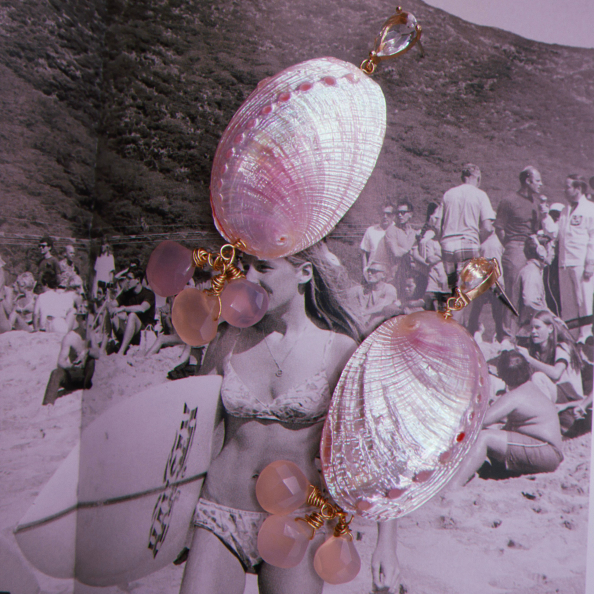 Soft meets statement. These pink abalone earrings mix rosy shell tones with rose quartz drops for a feminine and fresh look. Set on matching pink cubic zirconia studs, they’re romantic, graceful, and oh-so-pretty.