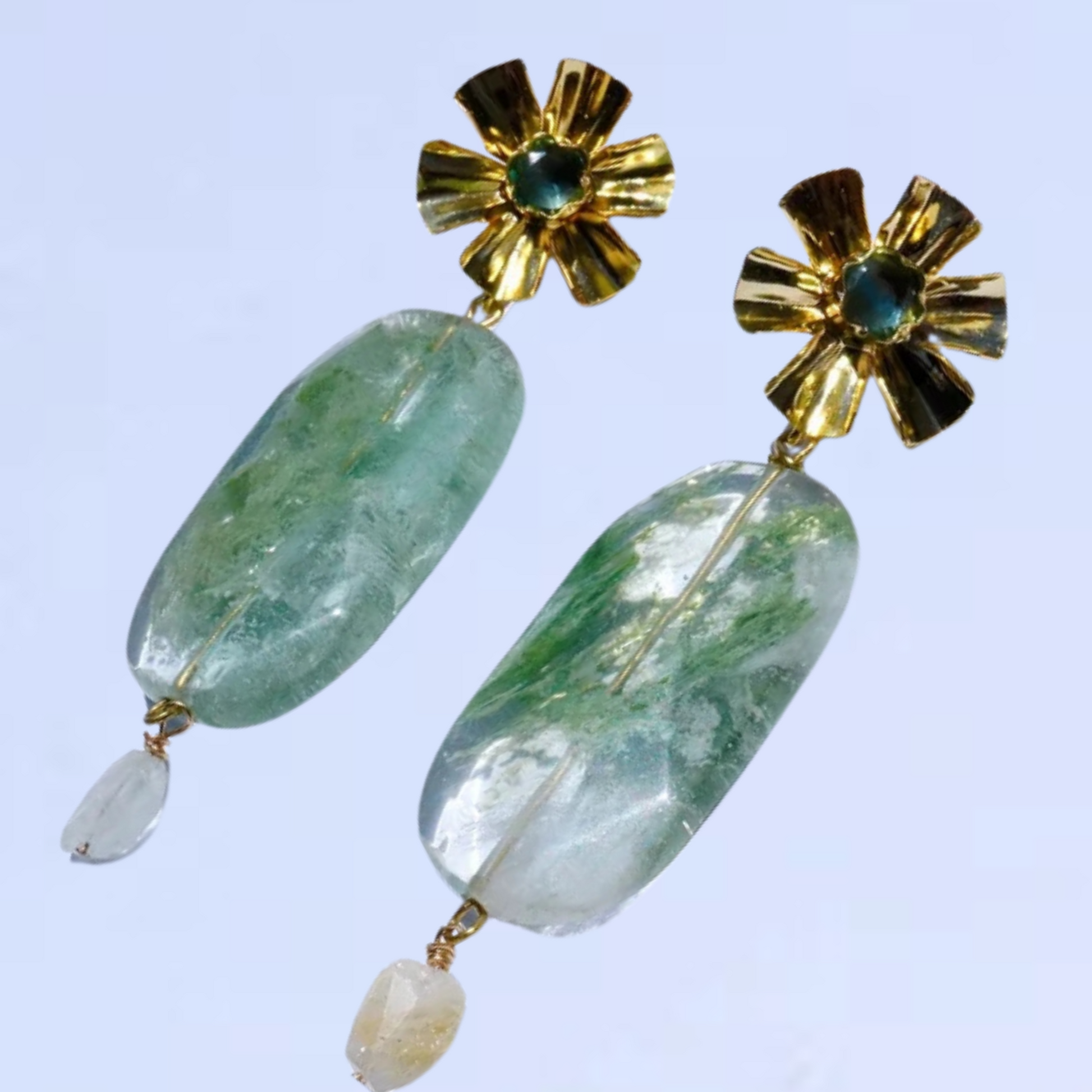 Nature’s beauty, right on your ears. These moss agate earrings show off dreamy green swirls that look like miniature forests in stone. Paired with faceted brass beads, they feel grounded and effortlessly stylish.