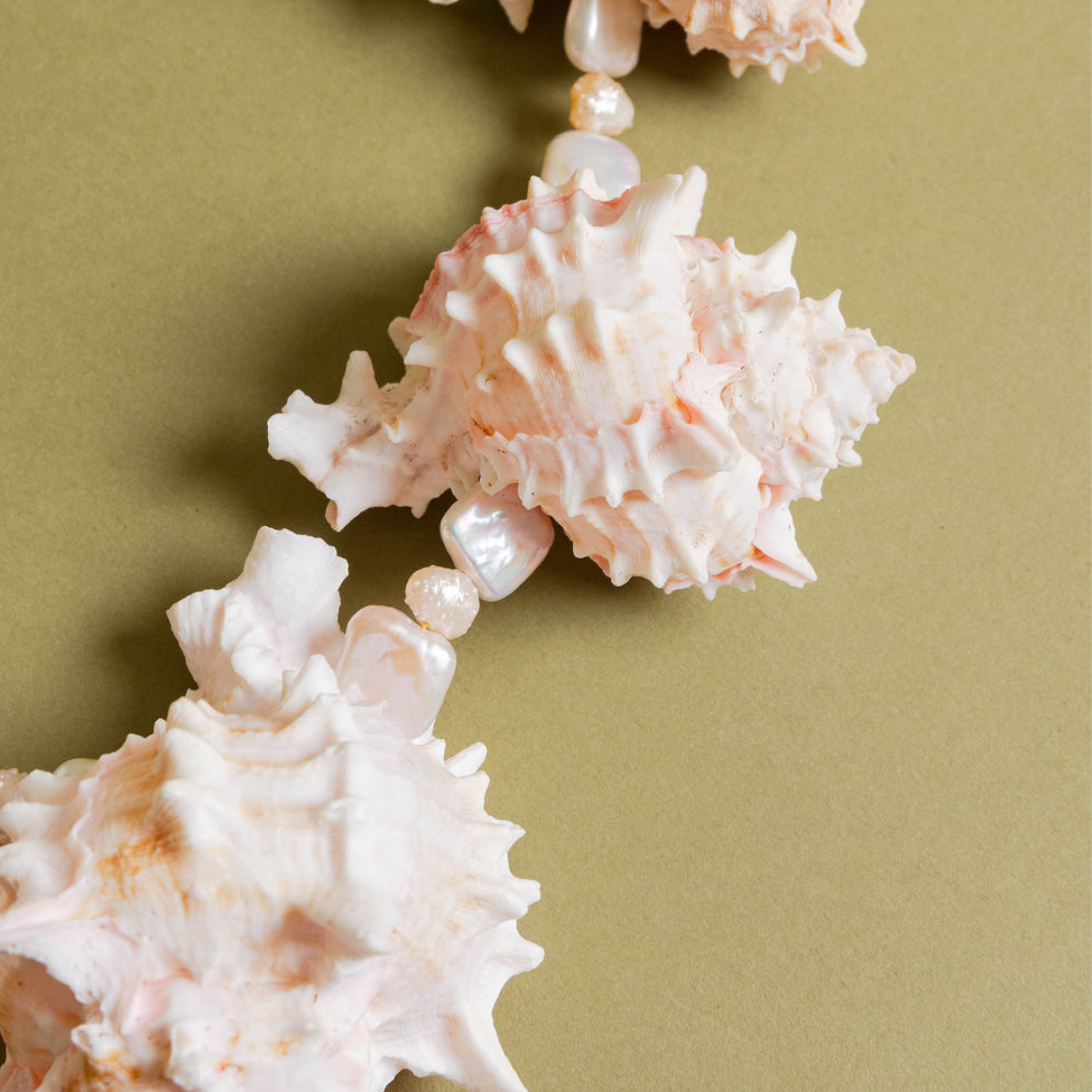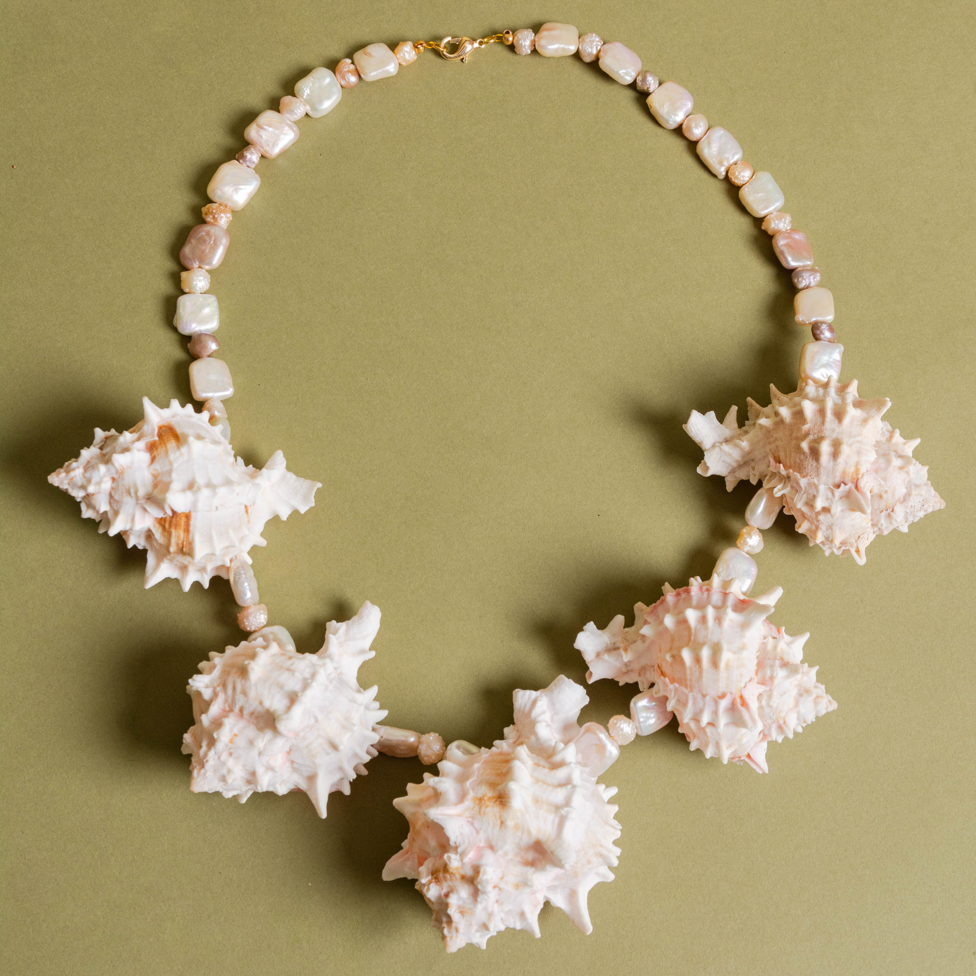 Straight from the sea. This necklace features a natural Bursa shells and fresh water pearls that adds effortless texture and beachy charm to any outfit.