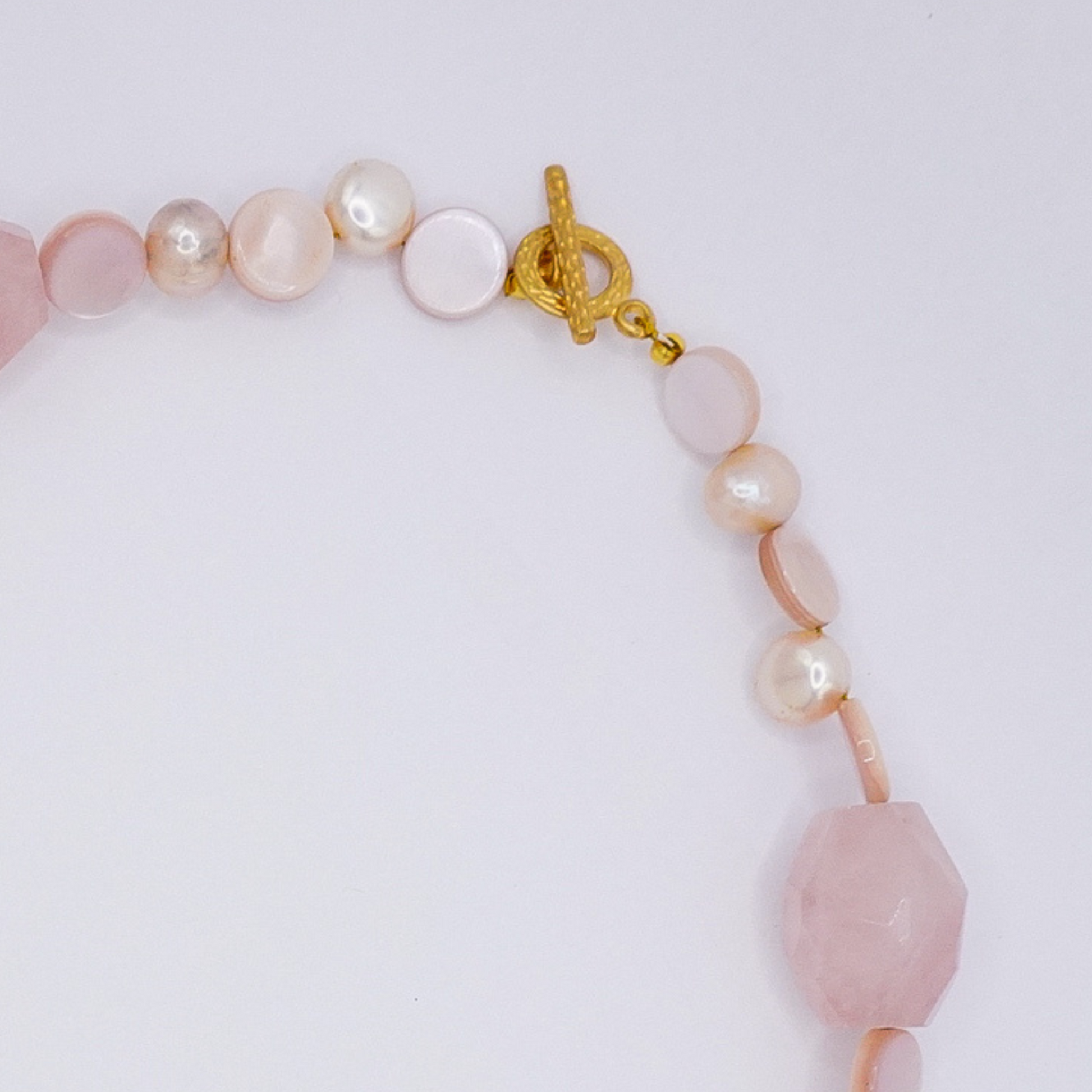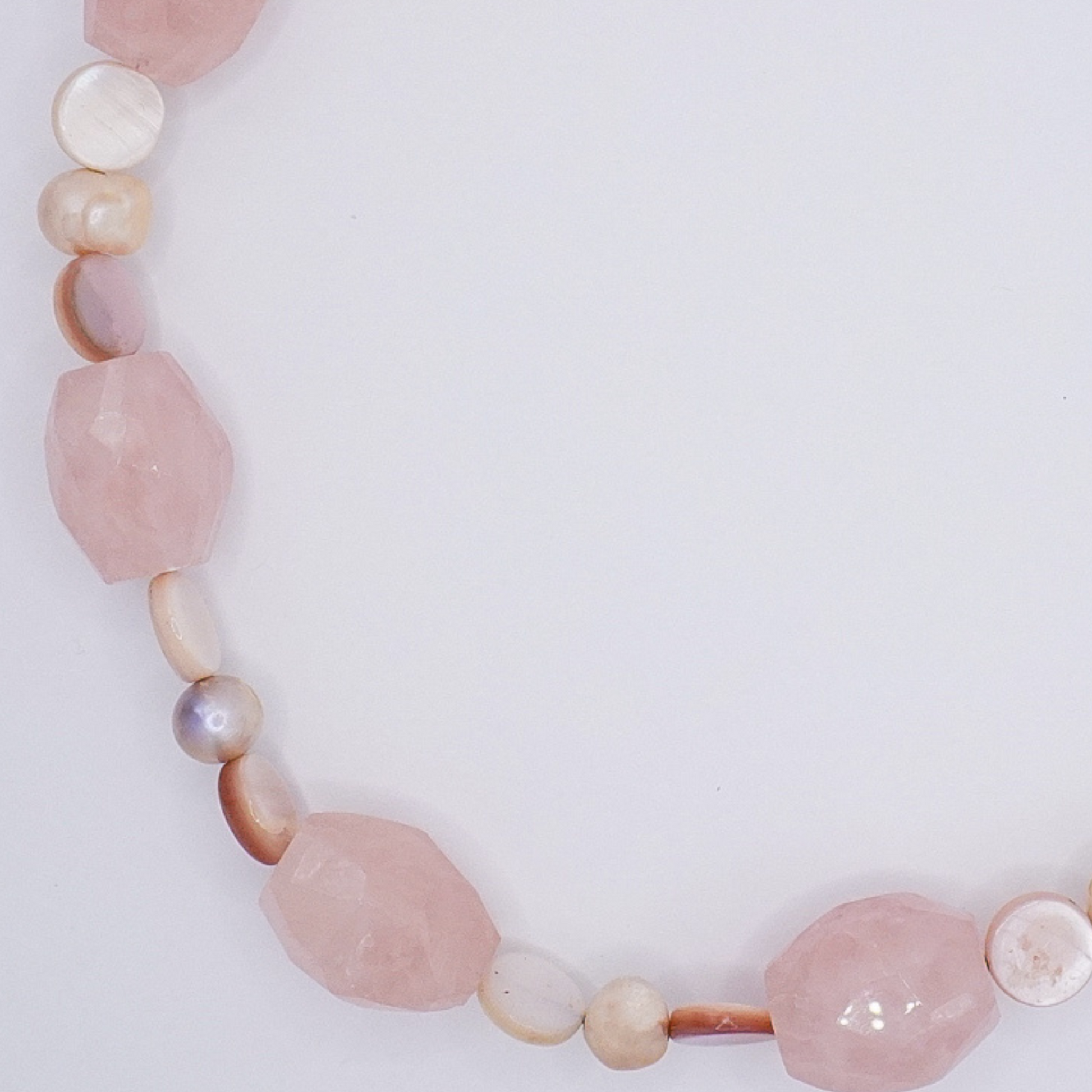 Soft pink meets sandy tones. This strand mixes rose quartz with natural shell beads for a flirty, feminine, and easy-to-style piece.
